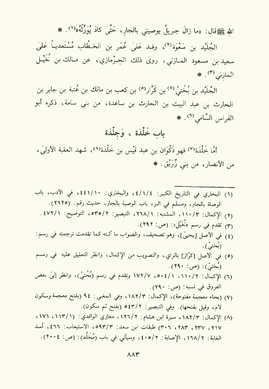 الجُلَيْد بن بُخْتي بن كرار بن كَعْب بن مالك بن عتبة بن جابر بن الحارث بن عبد البيت بن الحارث بن ساعدة من بني سامة , ذكره أبو الفراس السَّامي.