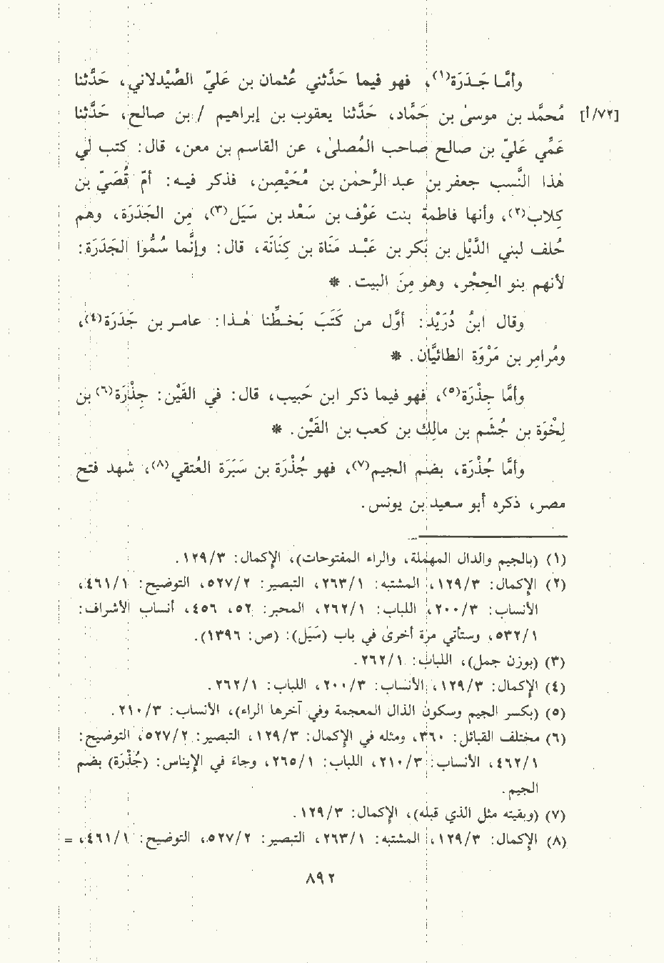 وأمَّا جَدَرَة , فهو فيما حَدَّثني عُثْمان بن علي الصَّيْدلاني , حَدَّثَنا مُحمَّد بن موسى بن حَمَّاد , حَدَّثَنا يعقوب بن إبراهيم بن صالح , حَدَّثَنا عمي علي بن صالح صاحب المصلى , عن القاسم بن معن، قال: كتب لي هذا النسب جَعْفر بن عبد الرَّحْمن بن مُحَيْصِن فذكر فيه: أم قصي بن كلاب , وأنها فاطمة بنت عَوْف بن سَعْد بن سيل من الجدرة , وهم حلف لبني الديل بن بكر بن عبد مناة بن كنانة , قال: وإنما سموا الجدرة: لأنهم بنو الحجر , وهو من البيت.