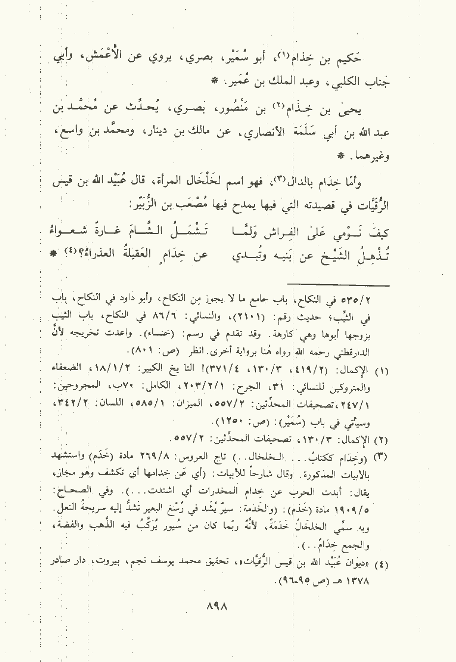 وأمَّا خِدَام بالدال , فهو اسم لخلخال المرأة قال عُبَيْد الله بن قَيْس الرقيات في قصيدته التي فيها يمدح فيها مصعب بن الزُّبَيْر: