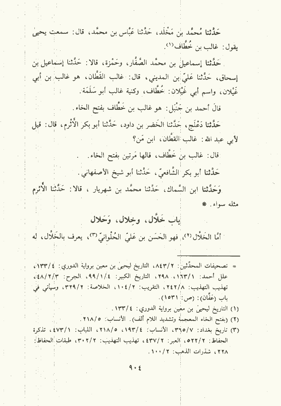 أمّا الخَلاَّل , فهو الحَسَن بن علي الحُلْوَانيّ , يعرف بالخَلاَّل , له مصنفات ومسند , يَرْوي عن أبي أسامة , وابن فضيل , وعبد الرَّزاق , وابن حِبَّان.
