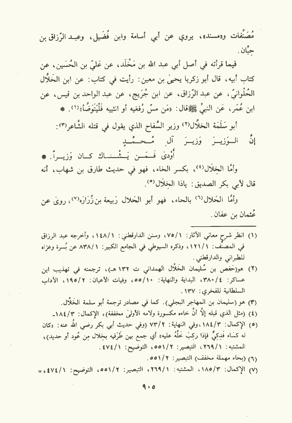 فيما قرأته في أصل أبي عَبد الله بن مخلد , عن علي بن الحُسَين , عن كتاب أبيه , قال أبو زكريا يَحْيى بن مَعِين: رأيت في كتاب: عن ابن الخَلاَّل الحُلْوَانيّ، عن عَبد الرَّزاق، عن ابن جُرَيْج، عن عَبد الواحد بن قَيْس، عن ابن عُمَر , عن النَّبِيِّ صلى الله عليه وسلم قال: من مس رُفْغَيْه أو انثييه فليتوضأ.