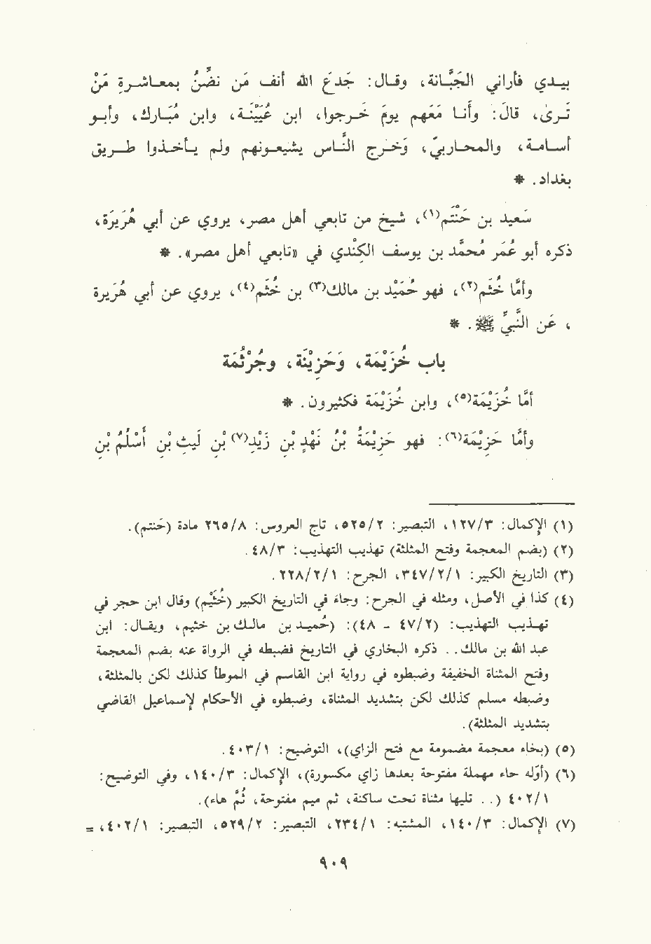 وأمَّا خُثَمِ , فهو حميد بن مالك بن خُثَم , يَرْوي عن أبي هُرَيْرة , عن النَّبِيِّ صلى الله عليه وسلم.