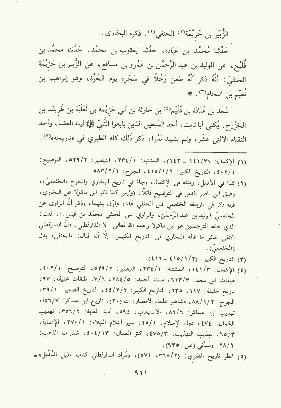حَدَّثَنا مُحمَّد بن عبادة , حَدَّثَنا يعقوب بن مُحمَّد , حَدَّثَنا مُحمَّد بن فليح , عن الوليد بن عبد الرَّحْمن بن عَمْرو بن مسافع , عن الزُّبَيْر بن حَزِيمَة الحنفي: أنه ذكر أنه طعن رجلا في سحره يوم الحرة , وهو إبراهيم بن نعيم بن النحام.
