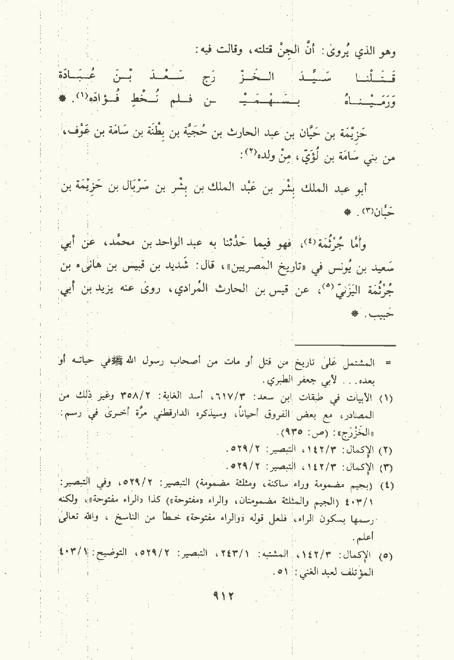 وأمَّا جُرْثُمَة , فهو فيما حَدَّثَنا به عبد الواحد بن مُحمَّد، عن أبي سعيد بن يُونُس في تاريخ المِصْرِيين قال: شديد بن قبيس بن هانىء بن جُرْثُمَة اليَزَنِيّ , عن قيس بن الحارث المُرَادِيّ، رَوَى عنه يزيد بن أبي حبيب.
