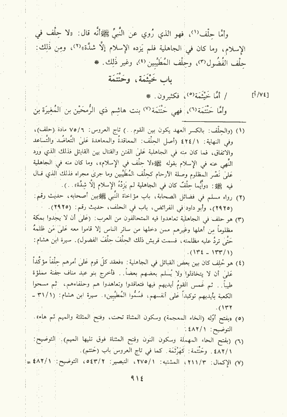 وأمَّا حِلْف , فهو الذي روي عن النَّبِيِّ صلى الله عليه وسلم أنه قال: لا حِلْف في الإسلام وما كان في الجَاهِليَّة فلم يزده الإسلام إلا شدة ومن ذلك: حلف الفضول وحلف المطيبين وغير ذلك.