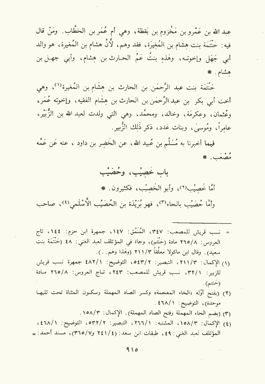 وأمَّا حُصَيْب بالحاء , فهو بريدة بن الحُصَيْب الأَسْلَمِيّ صاحب النَّبِيّ صلى الله عليه وسلم، رَوَى عنه ابن عَبَّاس وابناه عَبد الله وسليمان , وغيرهم سكن مرو ومات بها.