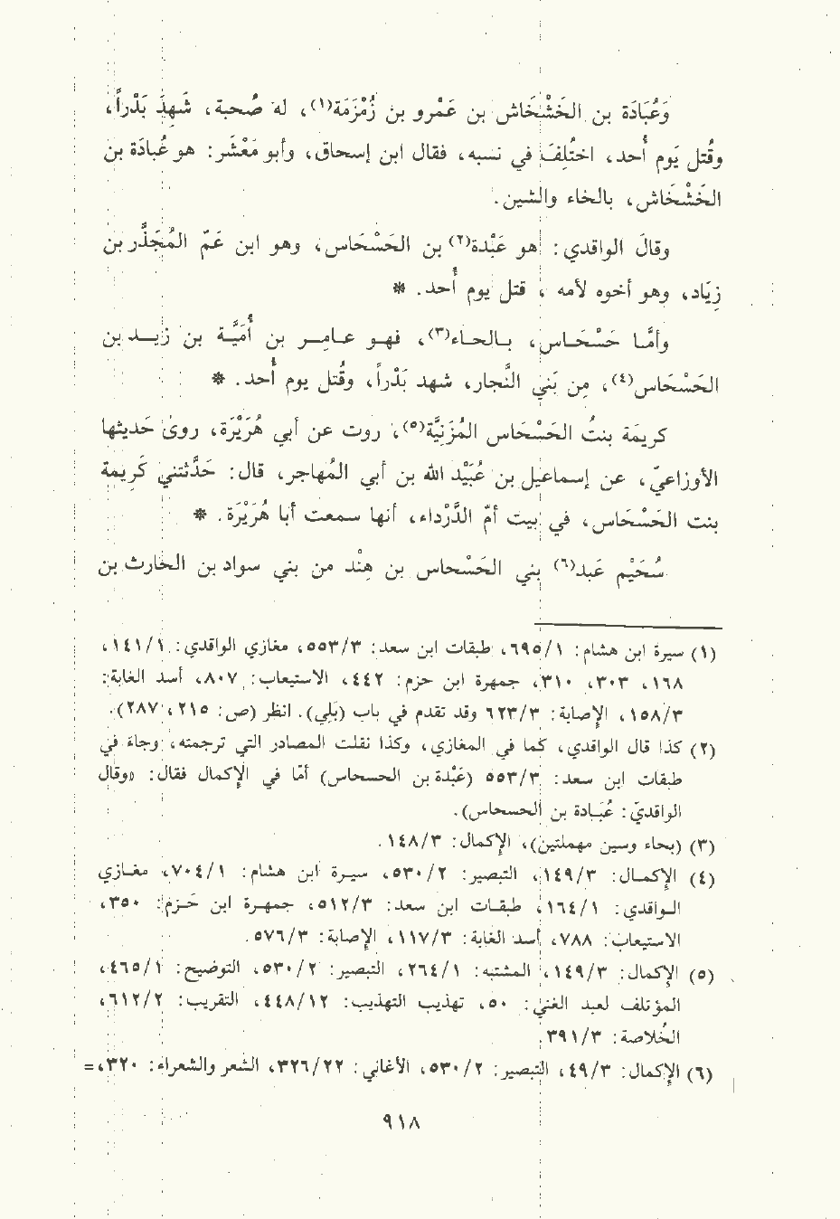 وأمَّا حَسْحَاس بالحاء , فهو عامر بن أُمَيَّة بن زيد بن الحَسْحَاس من بني النجار شهد بدرًا وقتل يوم أحد.