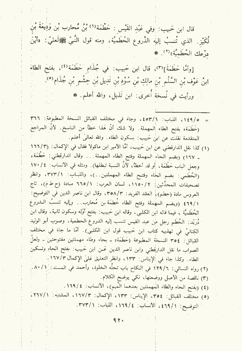 وأمَّا حَطَمَة قال ابن حبيب: في جذام حَطَمَة بفتح الطاء ابن عَوْف بن السلم بن مالك بن سود بن تديل بن حشم بن جذام.