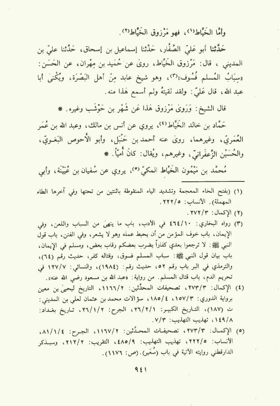 حَدَّثَنا أبو عَلِيّ الصَّفَّار , حَدَّثَنا إِسْمَاعِيل بن إِسْحَاق , حَدَّثَنا عَلِيّ بن المَدِينيّ قال: مرزوق الخَيَّاط , روى عن حميد بن مهران , عن الحَسَن: سباب المسلم فسوق , وهو شَيْخ عابد من أهل البصرة , ويكنى أبا عَبد الله قال عَلِيّ: ولقد لقيته ولم أسمع هذا منه.