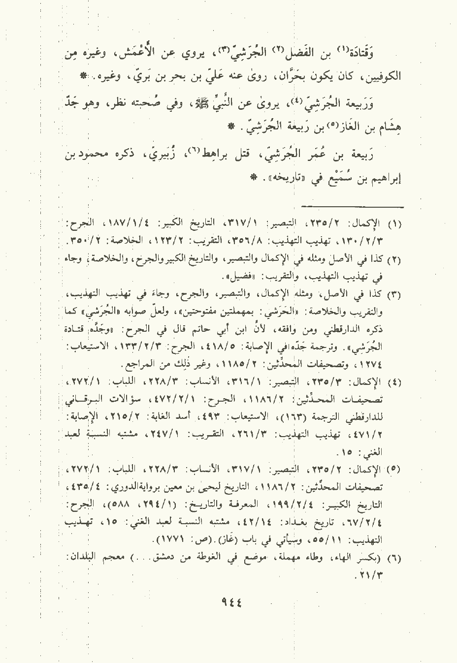 وربيعة الجُرَشِيّ , يَرْوي عن النَّبِيِّ صلى الله عليه وسلم وفي صحبته نظر , وهو جد هشام بن الغَاز بن رَبيعة الجُرَشِيّ.