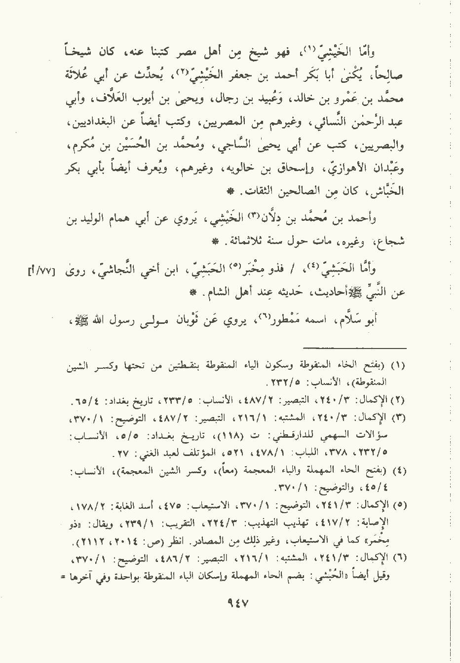 وأمَّا الخَيْشِي , فهو شَيْخ من أهل مِصْر كتبنا عنه كان شيخا صالحا , يُكْنَى أبا بكر أحمد بن جَعْفر الخَيْشِي , يُحَدِّث عن أبي علاثة مُحمَّد بن عَمْرو بن خالد وعبيد بن رجال ويحيى بن أَيُّوب العلاف , وأبي عبد الرَّحْمن النَّسَائِيّ , وغيرهم من المِصْرِيين , وكتب أيضًا عن البغداديين والبصريين , كتب عن أبي يَحْيى الساجي , ومُحمَّد بن الحُسَين بن مكرم , وعبدان الأهوازي , وإسحاق بن خالوية , وغيرهم , ويعرف أيضًا بأبي بكر الخباش , كان من الصالحين الثقات.