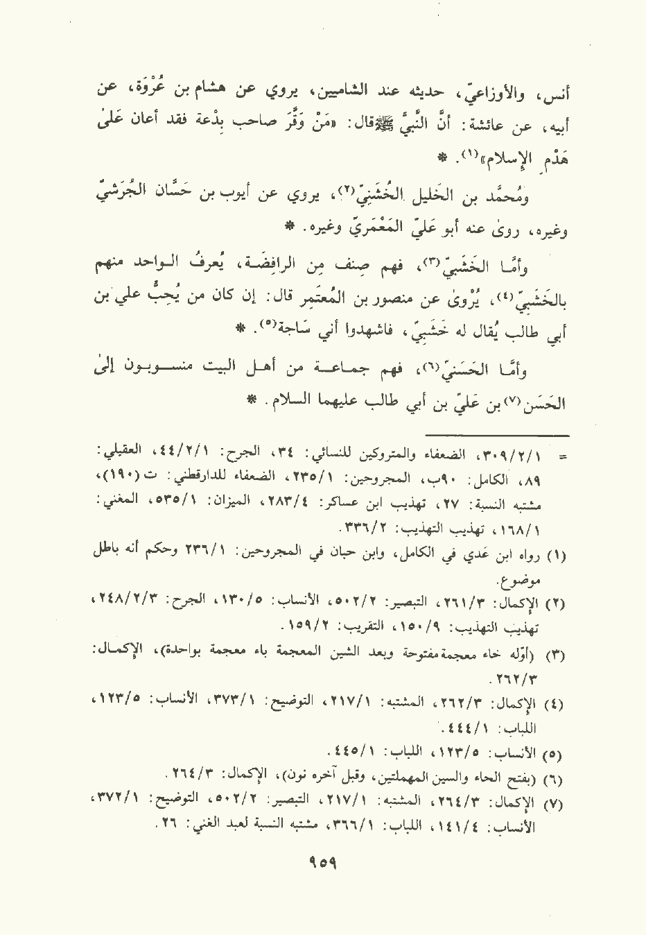 وأمَّا الخَشَبِي , فهم صنف من الرافضة , يعرف الواحد منهم بالخَشَبِيّ , يُرْوى عن مَنْصُور بن المُعْتَمِر قال: إن كان من يحب عَلِيّ بن أبي طَالِب يقال له خَشَبِي فاشهدوا أني ساجة.
