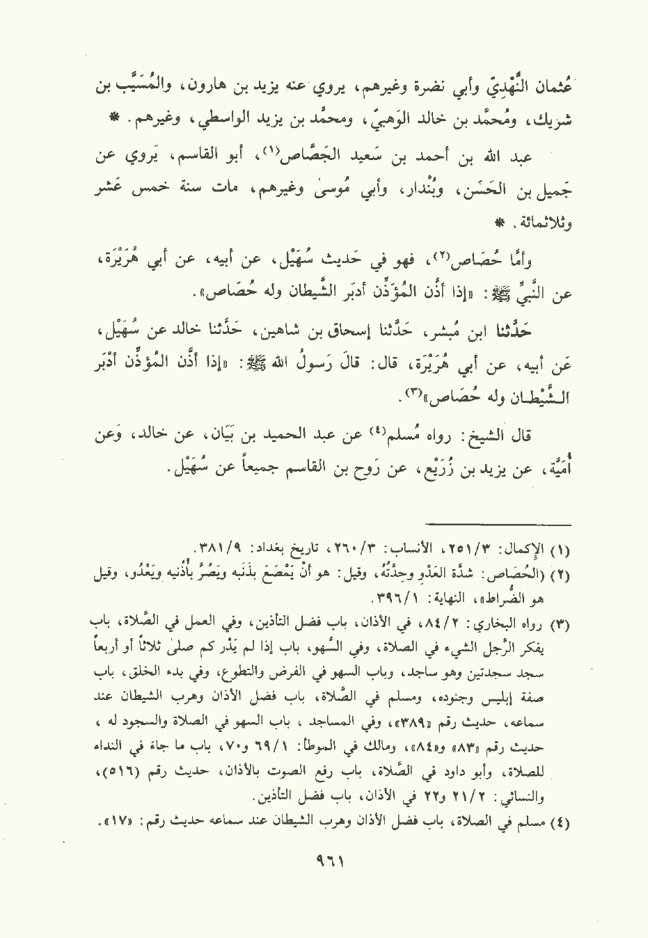 وأمَّا حُصَاص , فهو في حديث سهيل , عن أبيه، عن أبي هُرَيْرة , عن النَّبِيِّ صلى الله عليه وسلم: إذا أذن المؤذن أدبر الشيطان وله حُصَاص.