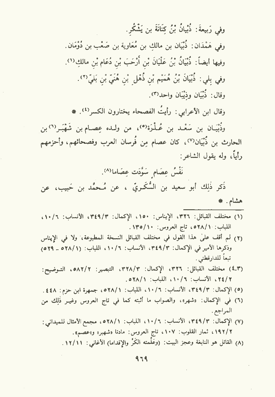وفيها أيضًا: ذُبْيَان بن عَلْيَان بن أَرْحَب بن دُعَام بن مَالِك.