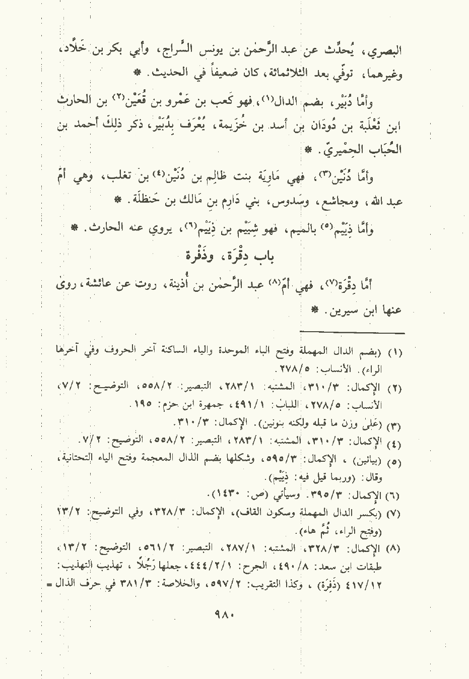 وأمَّا دُبَيْر , بضم الدال , فهو كَعْب بن عَمْرو بن قعين بن الحارث بن ثَعْلَبة بن دودان بن أسد بن خُزَيْمَة يعرف بدُبَيْر , ذكر ذلك أحمد بن الحُبَاب الحِمْيَري.