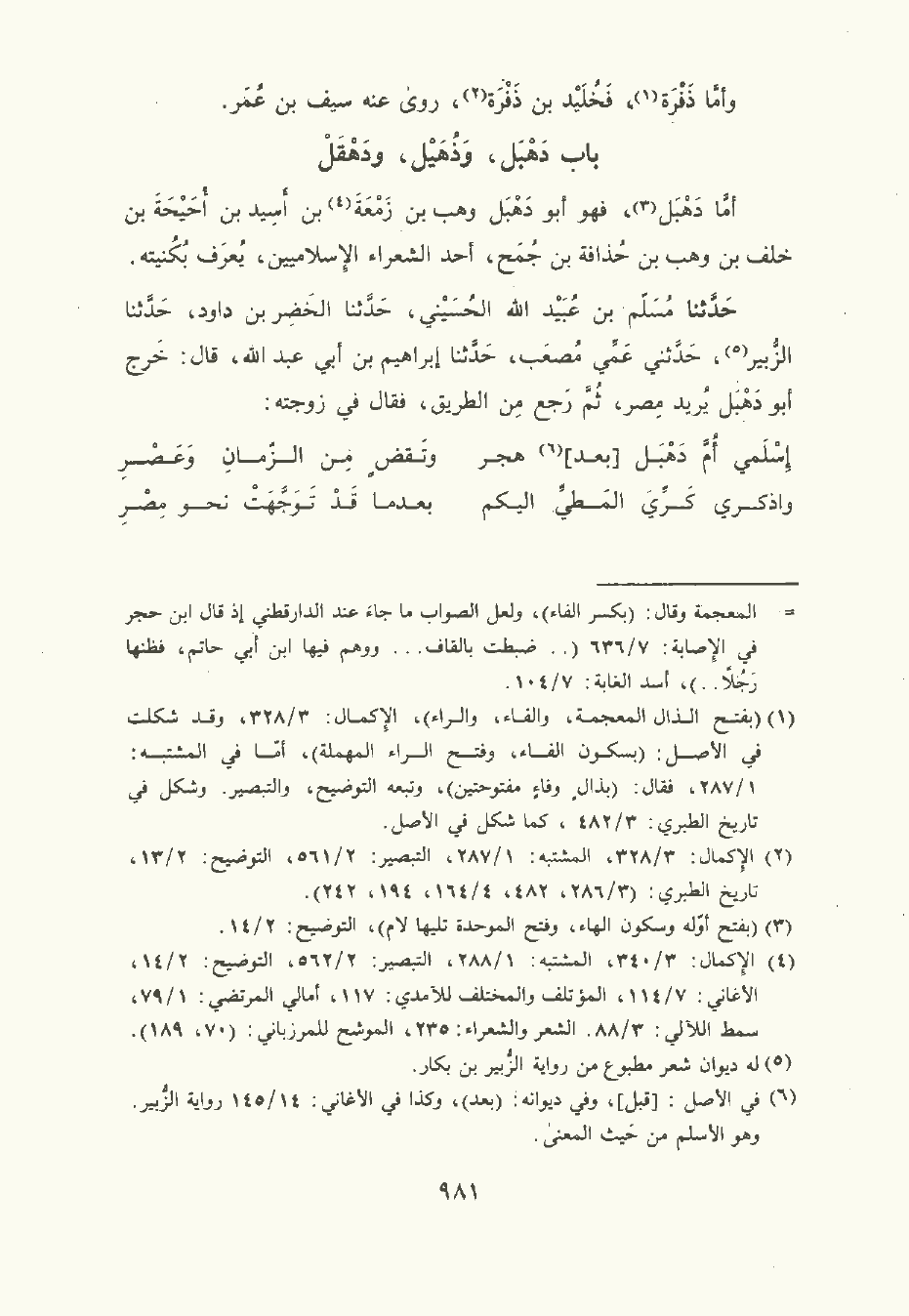 وأمَّا ذَفْرَة , فخُلَيْد بن ذَفْرَة، رَوَى عنه سَيْف بن عُمَر.
