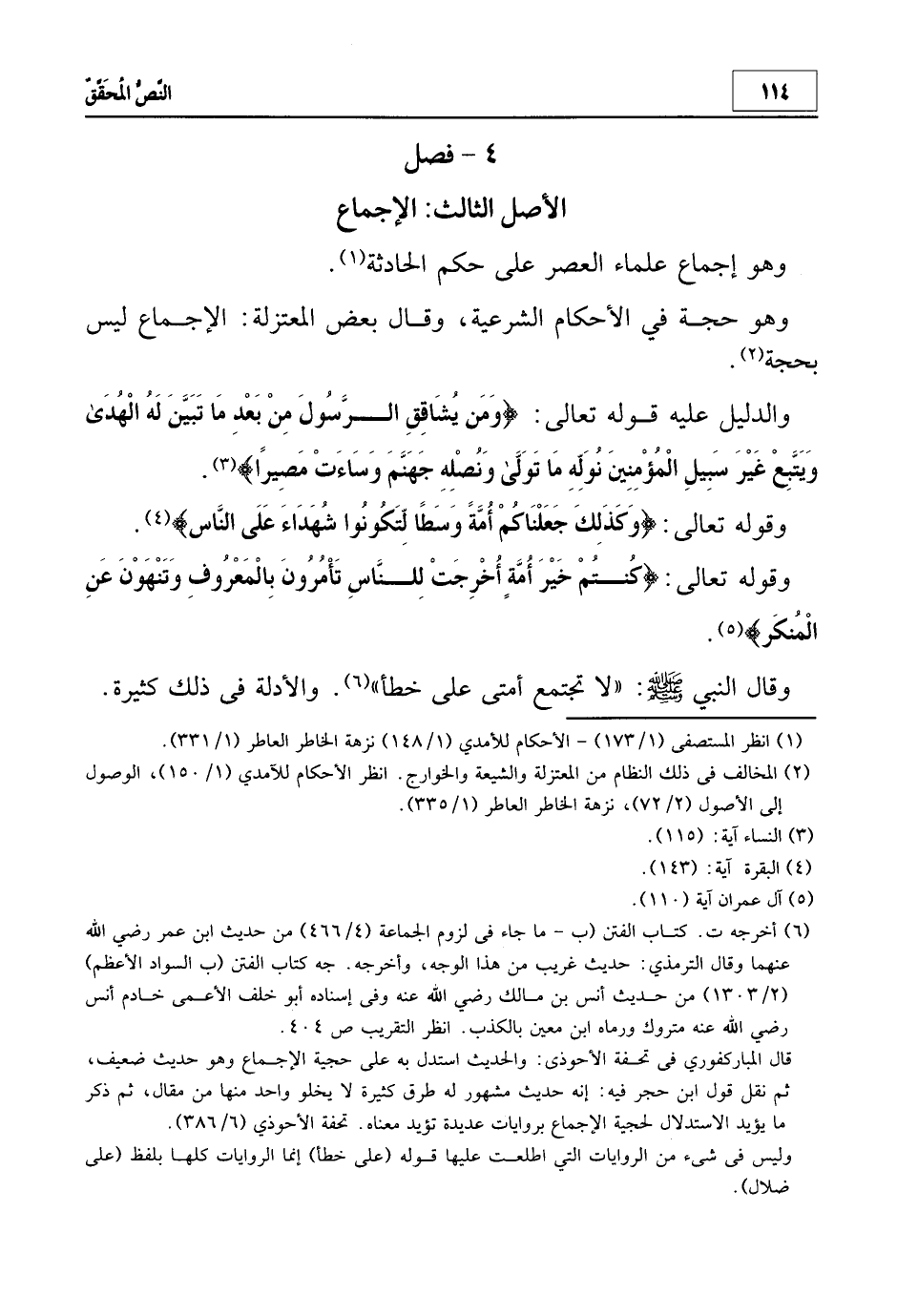 وقال النبي - صلى الله عليه وسلم: "لا تجتمع أمتي على خطأ"6. والأدلة في ذلك كثيرة.