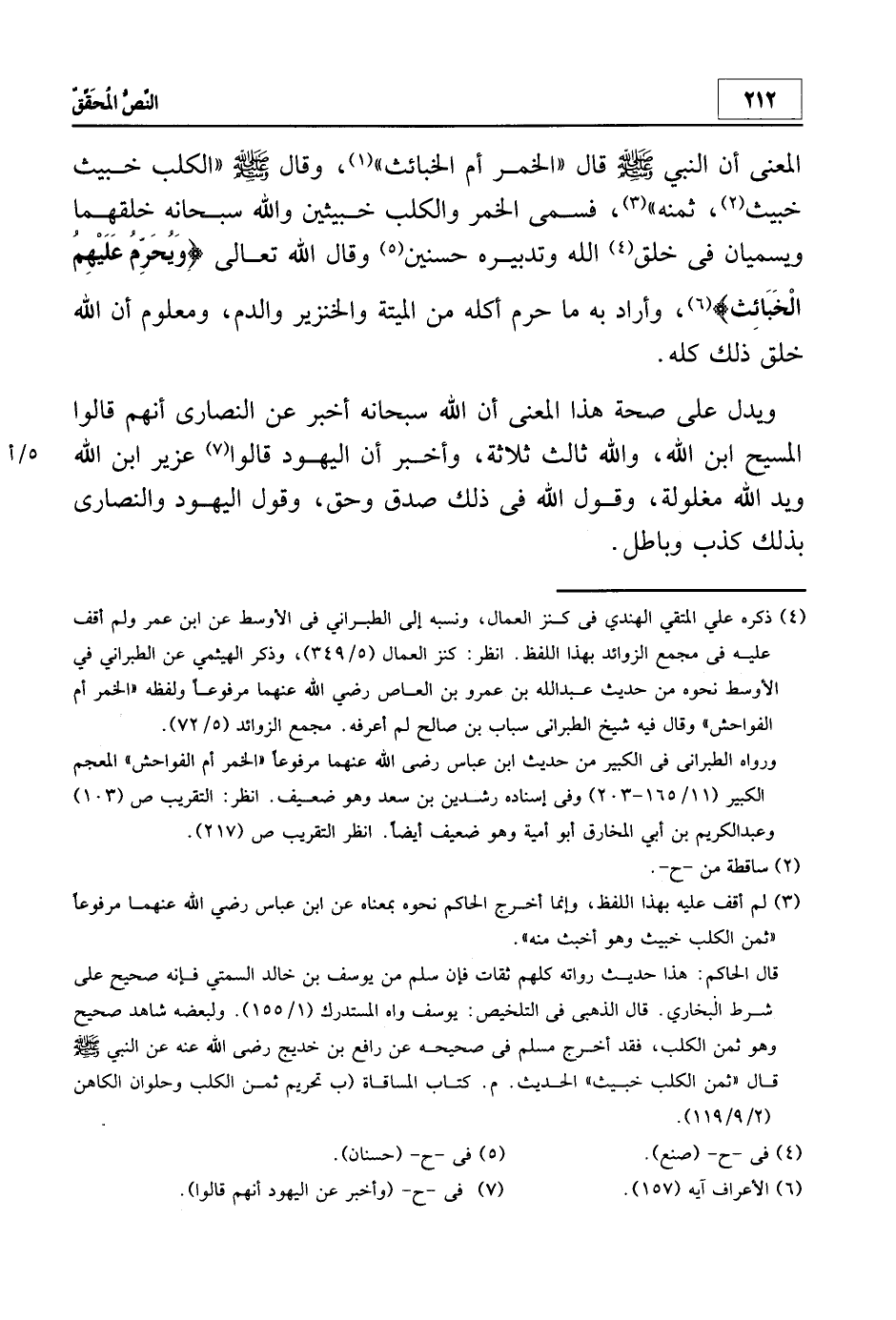 المعنى أن النبي - صلى الله عليه وسلم- قال: "الخمر أم الخبائث "1، وقال - صلى الله عليه وسلم-: "الكلب خبيث خبيث2، ثمنه" 3 فسمى الخمر والكلب خبيثين والله سبحانه خلقهما ويسميان في خلق4 الله وتدبيره حسنين5 وقال الله تعالى: {وَيُحَرِّمُ عَلَيْهِمُ الْخَبَائِثَ} 6، وأراد به ما حرم أكله من الميتة والخنزير والدم، ومعلوم أن الله خلق ذلك كله.