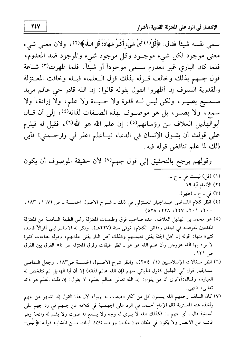 4 انظر: كلام القاضي عبد الجبار المعتزلي في ذلك شرح الأصول الخمسة ص 167، 183، 200، 201، 227، 228، 528.
