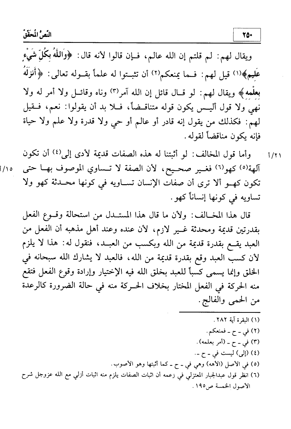 6 انظر: قول عبد الجبار المعتزلي في زعمه ان إثبات الصفات يلزم منه إثبات أزلي مع الله عزوجل شرح الأصول الخمسة ص195.