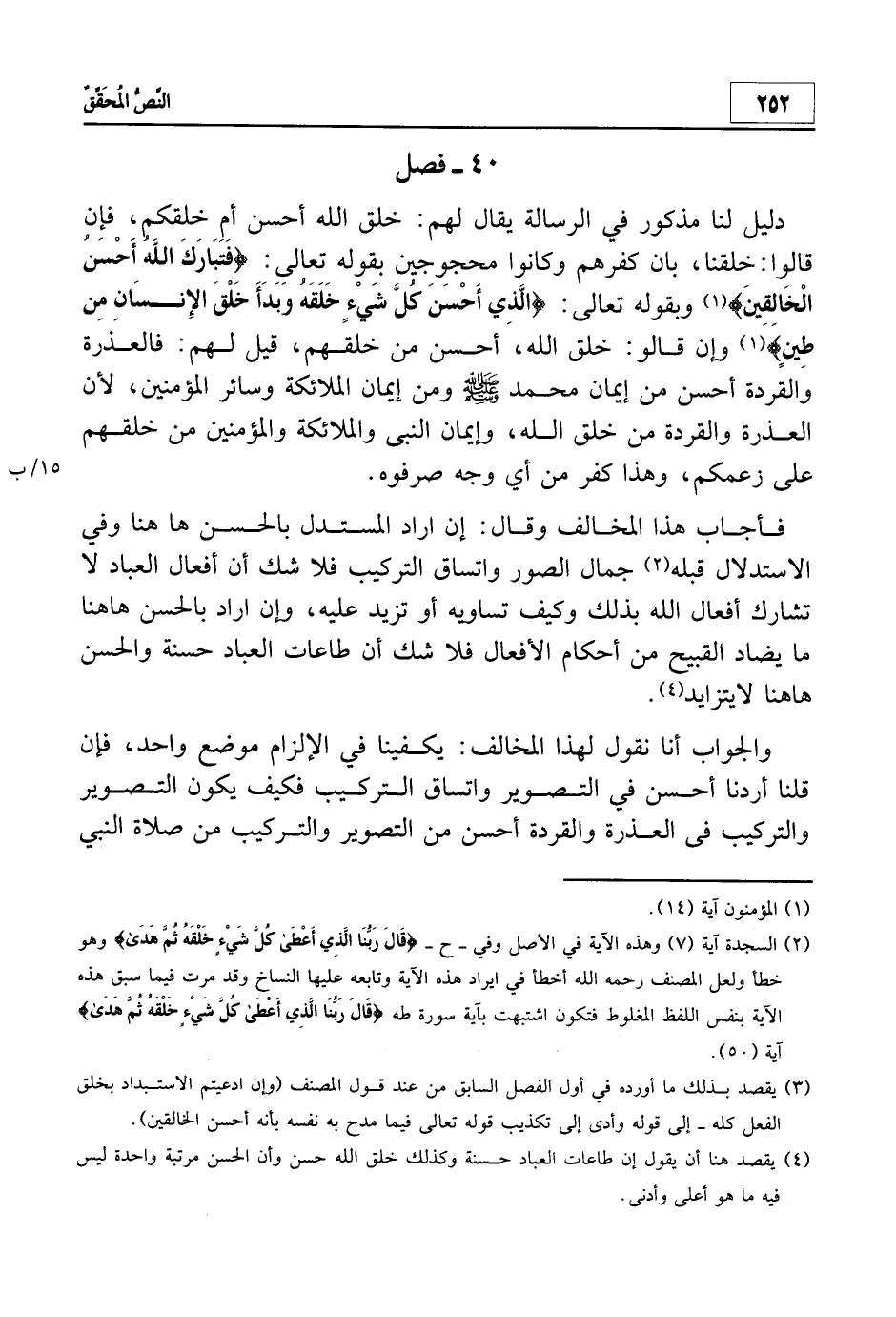 4 يقصد هنا أن يقول: إن طاعات العباد حسنة وكذلك خلق الله حسن وأن الحسن مرتبة واحدة ليس فيه ما هو أعلى وأدنى.