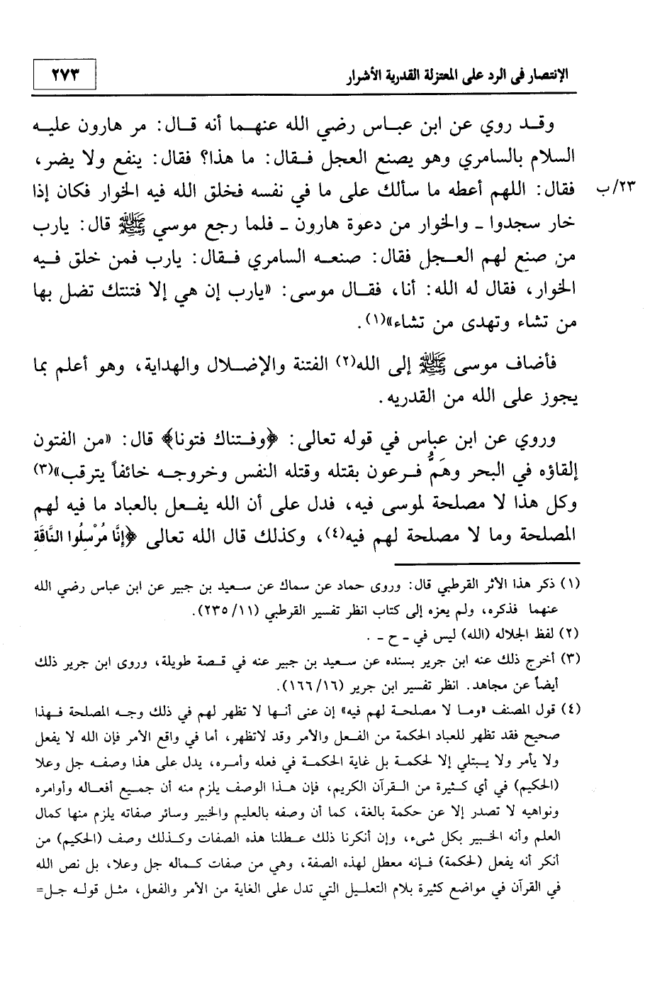 فأضاف موسى س إلى الله2 الفتنة والإضلال والهداية، وهو أعلم بما يجوز على الله من القدرية.