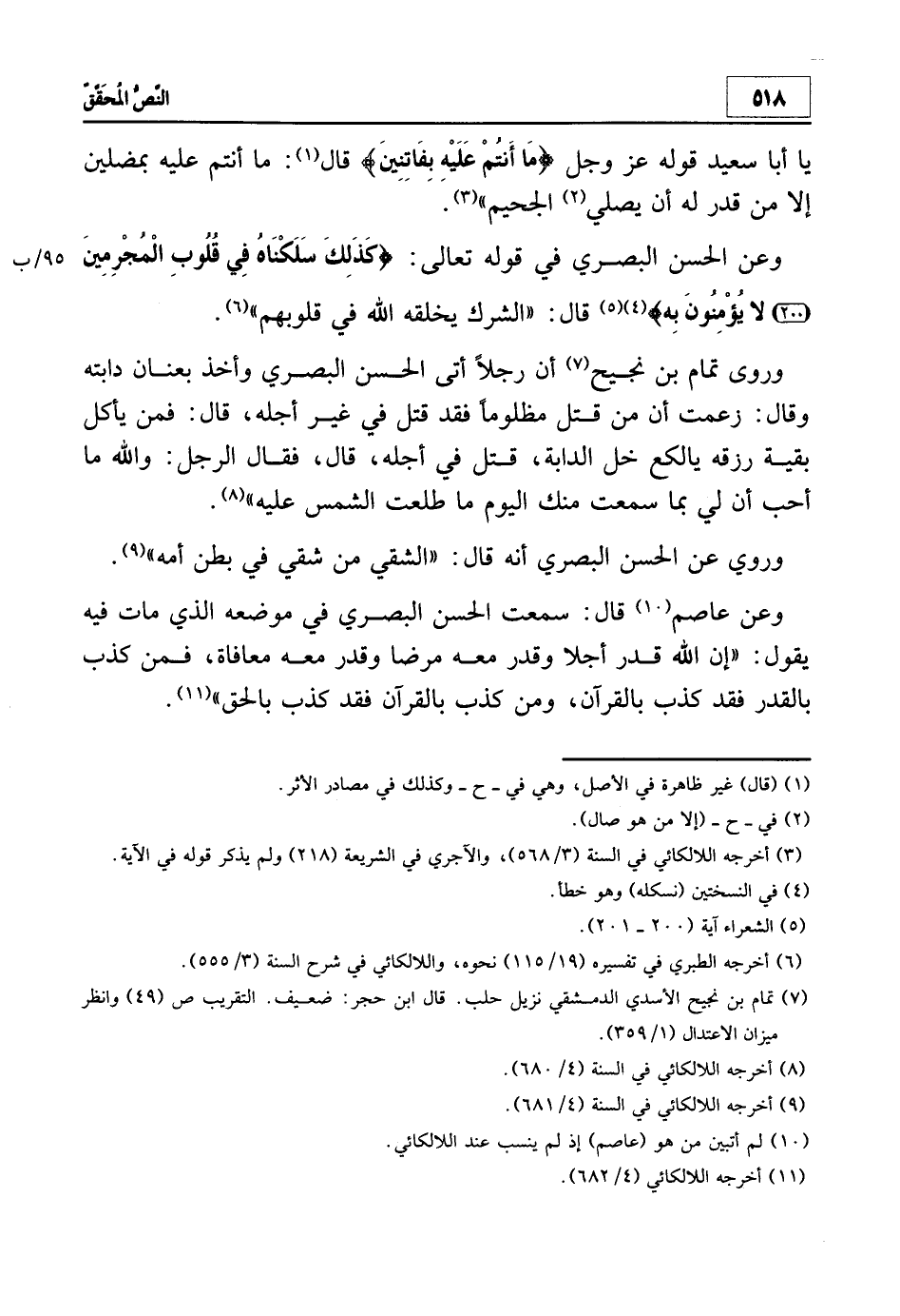 10 لم أتبين من هو (عاصم) إذ لم ينسب عند اللالكائي.