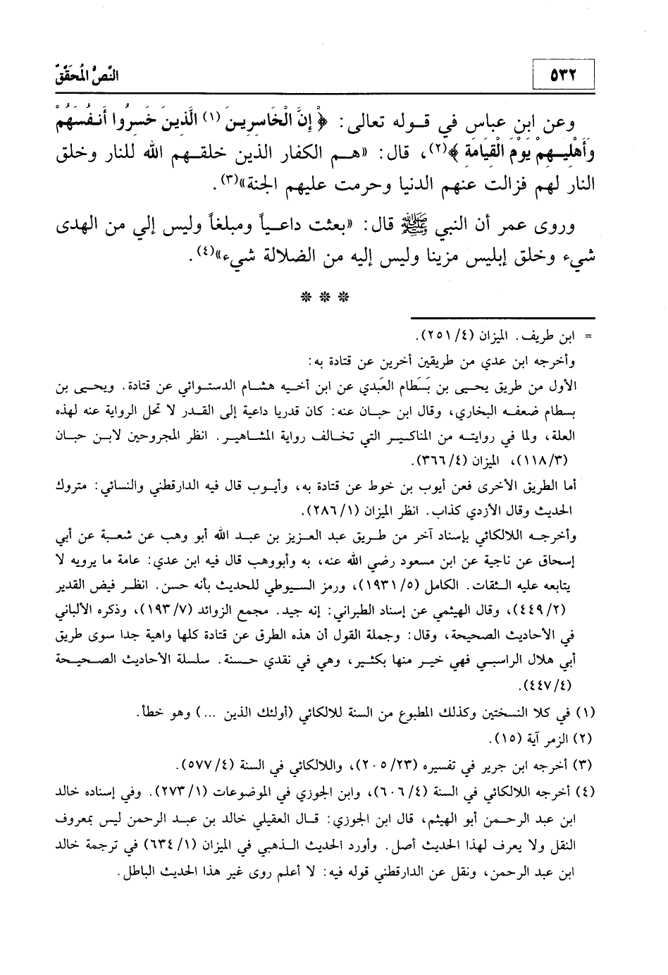 3 أخرجه ابن جرير في تفسيره 23/205، واللالكائي في السنة 4/577.