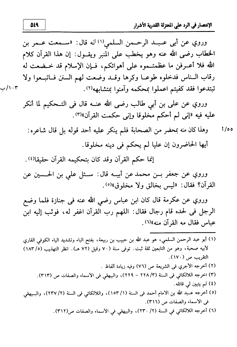 3 أخرجه اللالكائي في السنة 3/228-229، والبيهقي في الأسماء والصفات ص313.