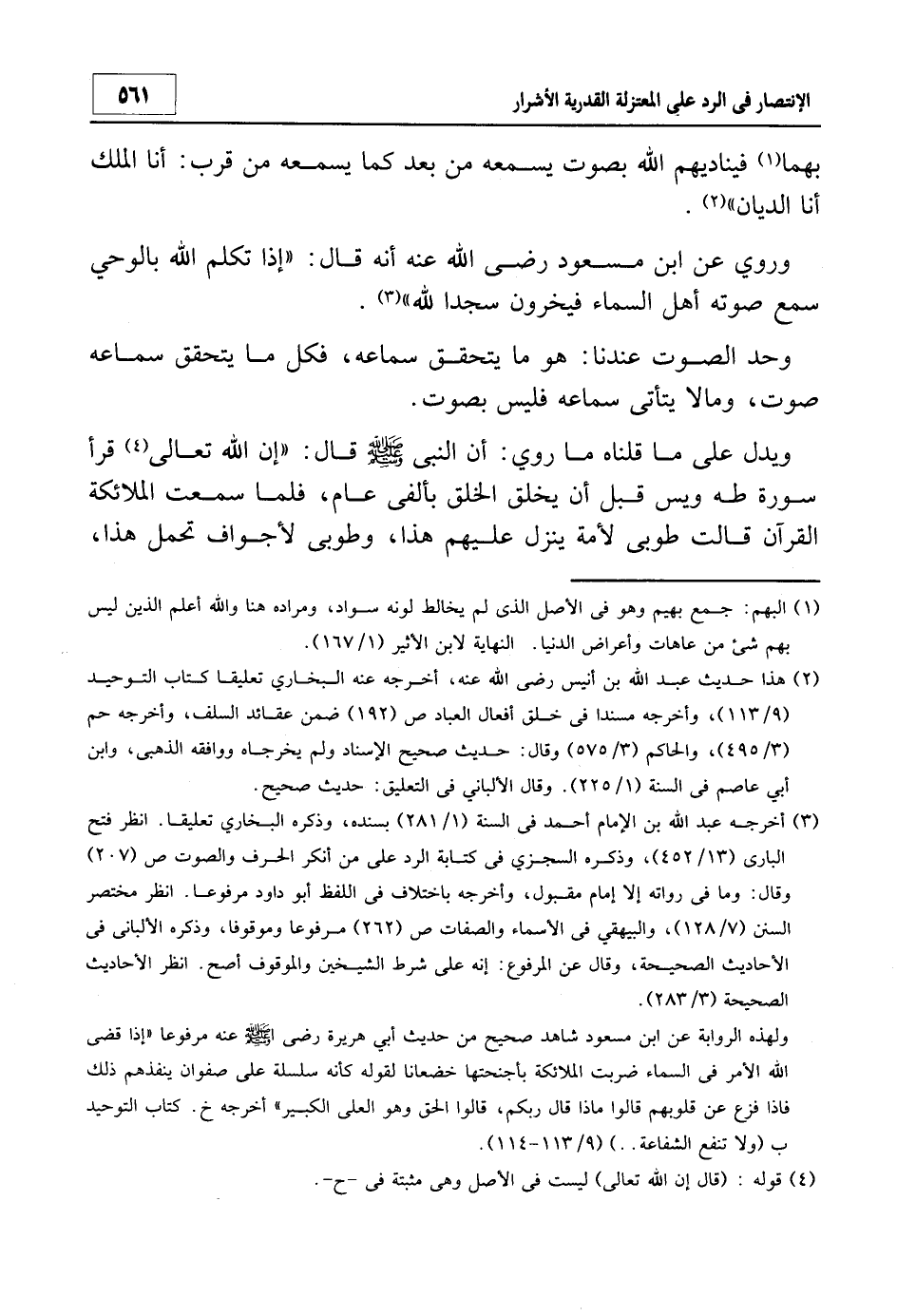 3 أخرجه عبد الله بن الإمام أحمد في السنة 1/281 بسنده، وذكره البخاري تعليقاً، انظر: فتح الباري 13/452، وذكره السجزي في كتابه الرد على من أنكر الحرف والصوت ص 207 وقال: وما في رواته إلا إمام مقبول، وأخرجه باختلاف في اللفظ أبو داود مرفوعاً. انظر: مختصر السنن 7/128، والبيهقي في الأسماء والصفات ص 262 مرفوعاً وموقوفاً، وذكره الألباني في الأحادي الصحيحة، وقال عن المرفوع: "إنه على شرط الشيخين والموقوف أصح". انظر: الأحاديث الصحيحة 3/283.