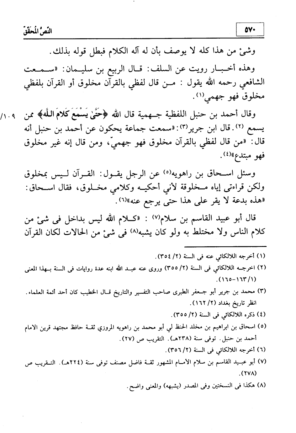 2 أخرجه اللالكائي في السنة 2/355 وروى عنه عبد الله ابنه عدة روايات في السنة بهذا المعنى 1/163-165.