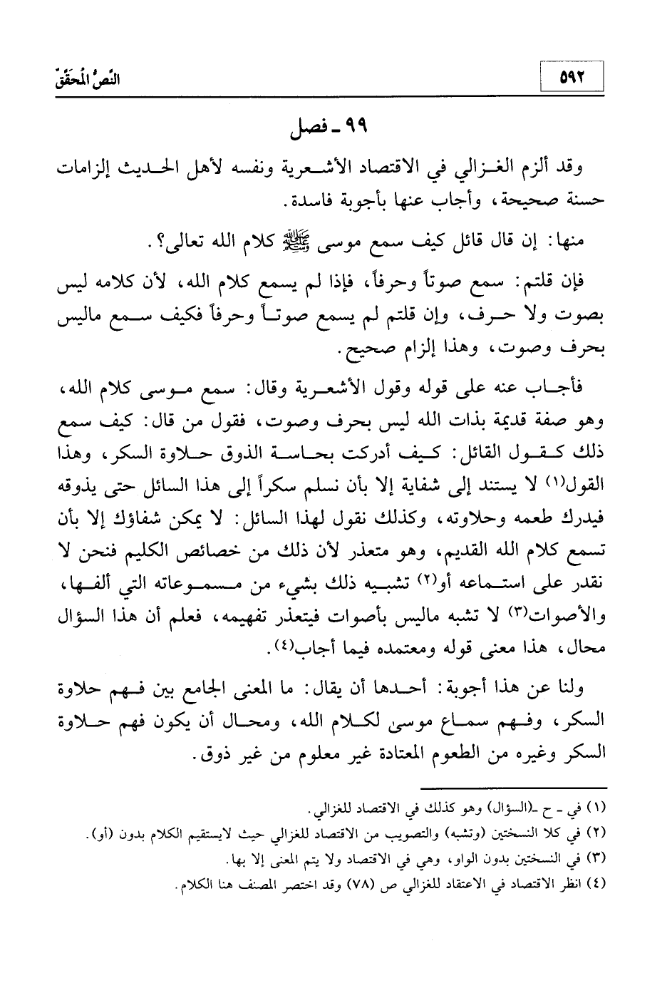4 انظر: الاقتصاد في الاعتقاد للغزالي ص 78 وقد اختصر المصنف هنا الكلام.