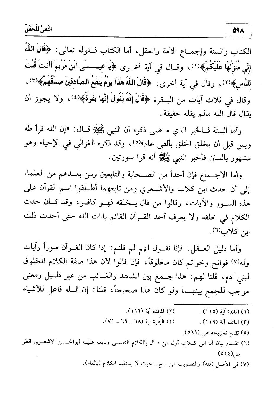 6 تقدم بيان أن ابن كلاب أول من قال بالكلام النفسي وتابعه عليه أبو الحسن الأشعري. انظر: ص 544.