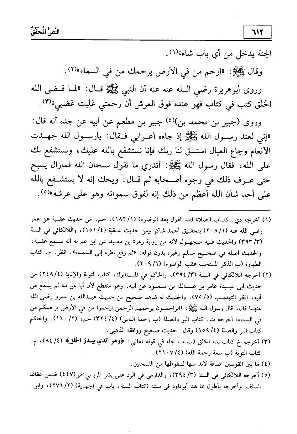 2 أخرجه اللالكائي في السنة 3/394، والحاكم في المستدرك، كتاب التوبة والإنابة 4/238 من حديث أبي عبيدة عامر بن عبد الله بن مسعود عن أبيه، وهو منقطع لأن أبا عبيدة لم يسمع من أبيه، انظر: التهذيب 5/75، والحديث له شاهد صحيح من حديث عبد الله بن عمرو - رضي الله عنهما - قال: قال رسول الله صلى الله عليه وسلم: "الراحمون يرحمهم الرحمن ارحموا من في الأرض يرحمكم من في السماء" أخرجه ت. كتاب البر والصلة (ب. رحمة الناس) 4/324 حم. 2/160، والحاكم كتاب البر والصلة 4/159 وقال: "حديث صحيح" ووافقه الذهبي.