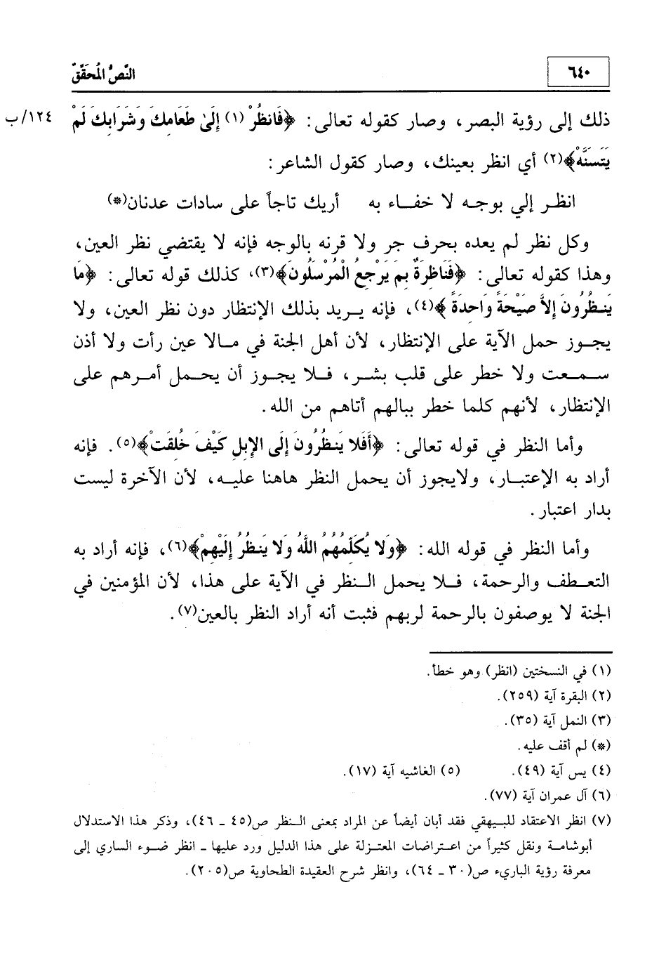 8 انظر: الاعتقاد للبيهقي فقد أبان أيضاً عن المراد بمعنى النظر ص 45- 46، وذكر الاستدلال أبو شامة ونقل كثيراً من اعتراضات المعتزلة على هذا الدليل ورد عليها. انظر: ضوء الساري إلى معرفة رؤية الباري ص30- 64، وانظر: شرح العقيدة الطحاوية ص 205.
