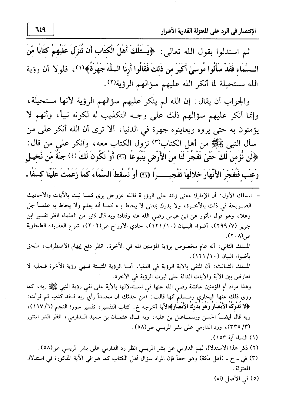 2 ذكر هذا الاستدلال لهم الدارمي عن بشر المريسي انظر: رد الدارمي على بشر المريسي ص 58.