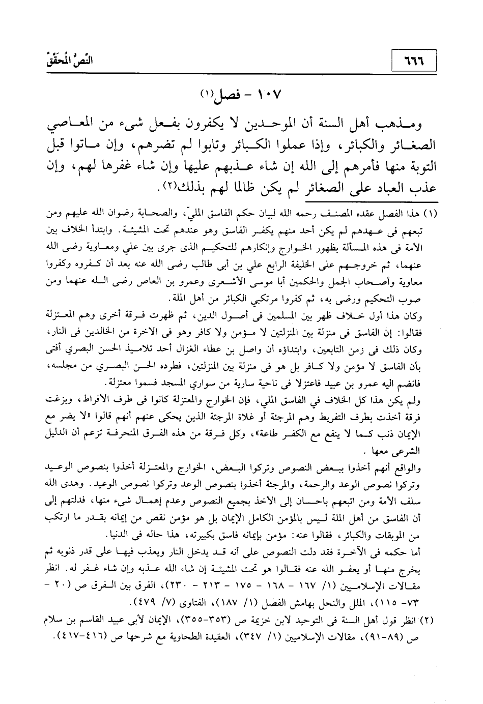 1 انظر قول أهل السنة في: التوحيد لابن خزيمة ص (353 - 355) ، الإيمان لأبي عبيد القاسم بن سلام ص (89 - 1) مقالات الإسلاميين 1/347 العقيدة الطحاوية مع شرحها ص (416 - 417) .