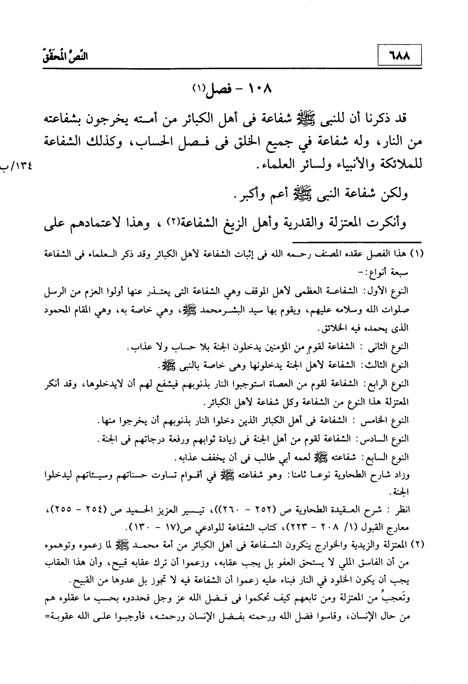 وتَعجبُ من المعتزلة ومن تابعهم كيف تحكموا في فضل الله عز وجل فحدوده بحسب ما عقلوه هم من حال الإنسان وقاسوا فضل الله ورحمته بفضل الإنسان ورحمته، فأوجبوا على الله عقوبة الفاسق وحجروا فضله بتقبيحهم العفو عن الفاسق، ثم زعموا أن هذا العقاب يحب أن يكون دائما وأبدا قياسا فاسدا وقولا بالباطل، وحرموا بناء عليه أن يشفع في أهل الكبائر شافع، فحجروا واسع رحمة الله، وردوا ما ثبت من الأحاديث الصحيحة في الشفاعة تحكما وتخرصا، وإلا ماذا عليهم لو قالوا إن الفاسق ظالم وعاص ومستحق للعقوبة، والجنة والنار ملك الله وتحت تصرفه فيدخله أيهما شاء إما تفضلا أو عدلا، وإذا أدخله النار بعدله ونال جزاءه أخرجه وأدخله الجنة تفضلا منه ورحمة وهم الحكم العدل ولا معقب لحكمه الفعال لما يريد.