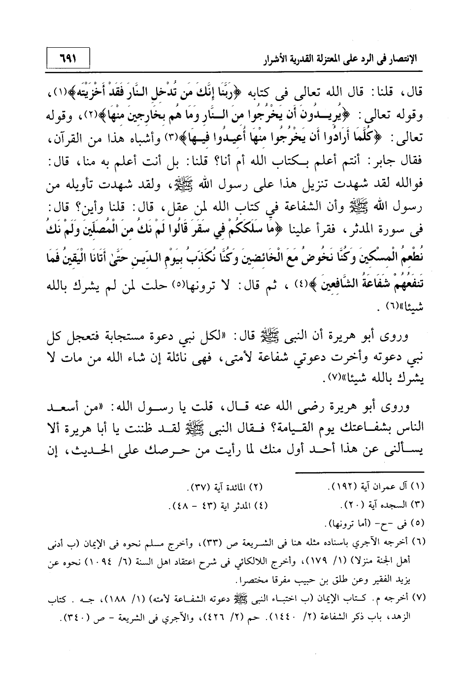7 أخرجه م. كتاب الإيمان (ب اختباء النبي صلى الله عليه وسلم دعوته الشفاعة لأمته) 1/188، جه؟ كتاب الزهد باب ذكر الشفاعة 2/1440. حم 2/426، والآجري في الشريعة ص 340.
