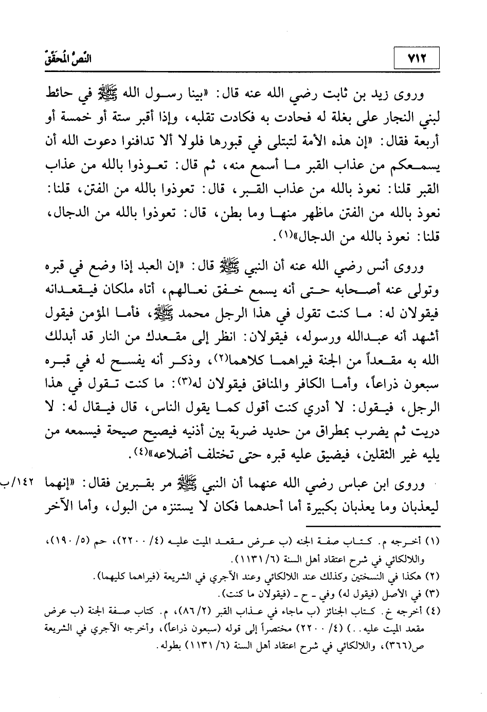 4 أخرجه خ. كتاب الجنائز (ب ما جاء في عذاب القبر) 2/86، م. كتاب صفة الجنة (ب عرض مقعد الميت عليه ... ) 4/2200 مختصراً إلى قوله: (سبعون ذراعاً) ، وأخرجه الآجري في الشريعة ص 366، واللالكائي في شرح اعقتاد أهل السنة 6/1131 بطوله.