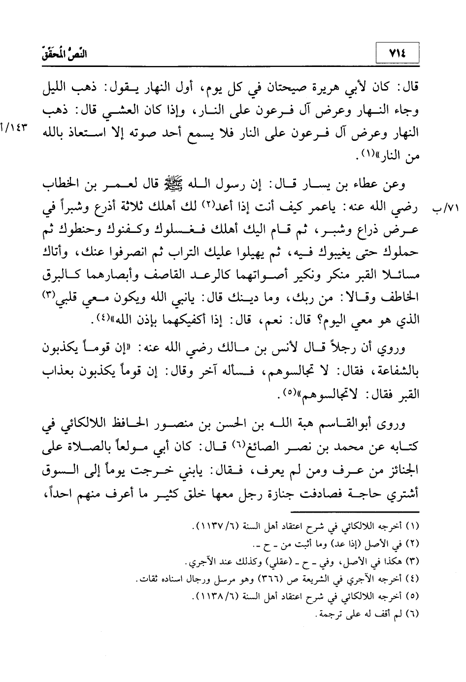1 أخرجه اللالكائي في شرح اعتقاد أهل السنة 6/1137.