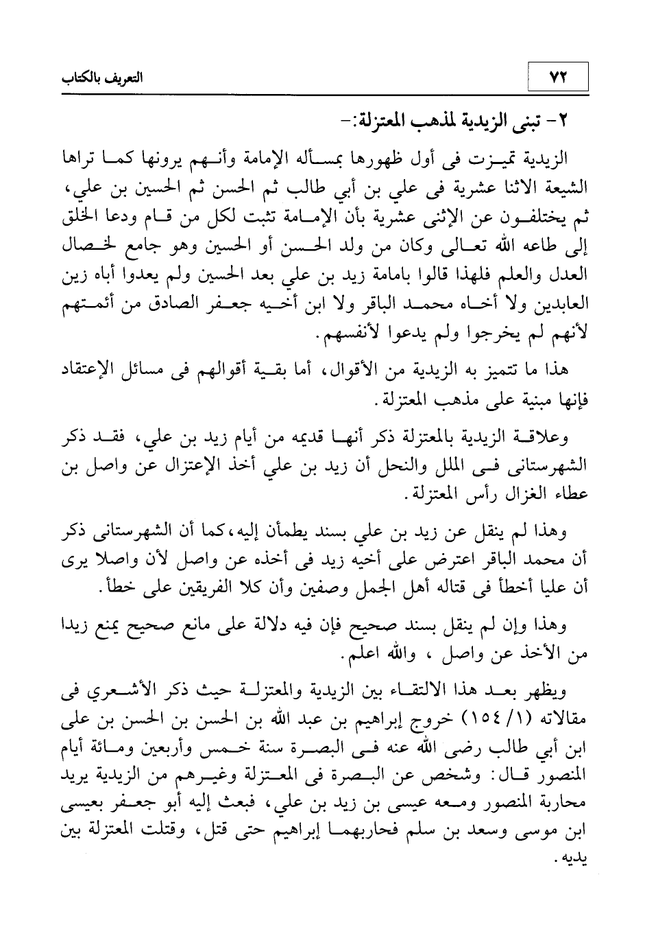 وهذا لم ينقل عن زيد بن علي بسند يطمأن إليه، كما أن الشهرستاني ذكر أن محمد الباقر اعترض على أخيه زيد في أخذه عن واصل لأن واصلا يرى أن عليا أخطأ في قتاله أهل الجمل وصفين وأن كلا الفريقين على خطأ.