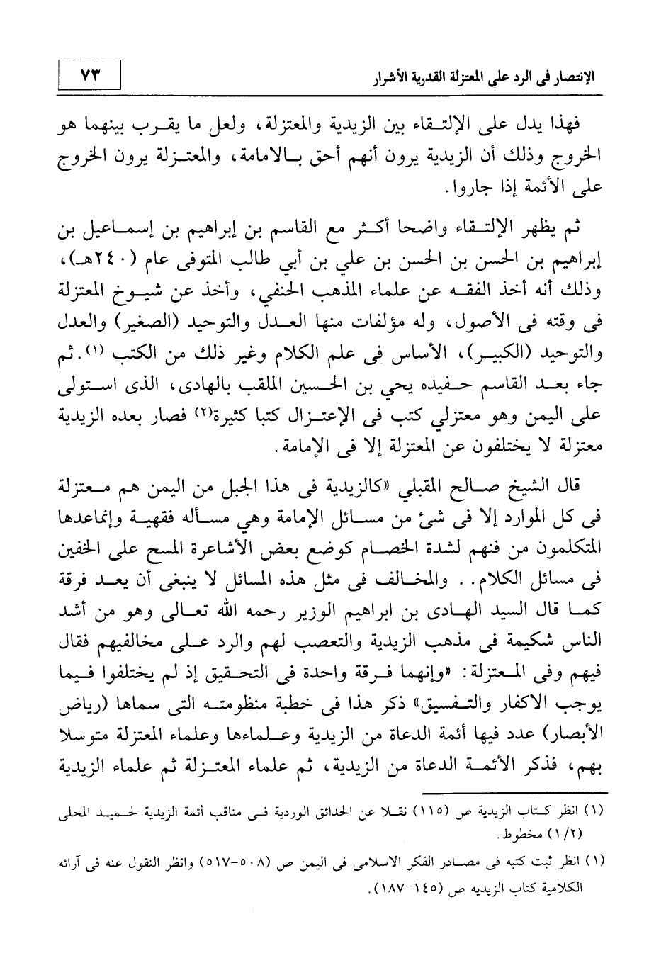 1 انظر: كتاب الزيدية ص 115 نقلا عن الحدائق الوردية في مناقب أئمة الزيدية لحميد المحلى 2/1 مخطوط.