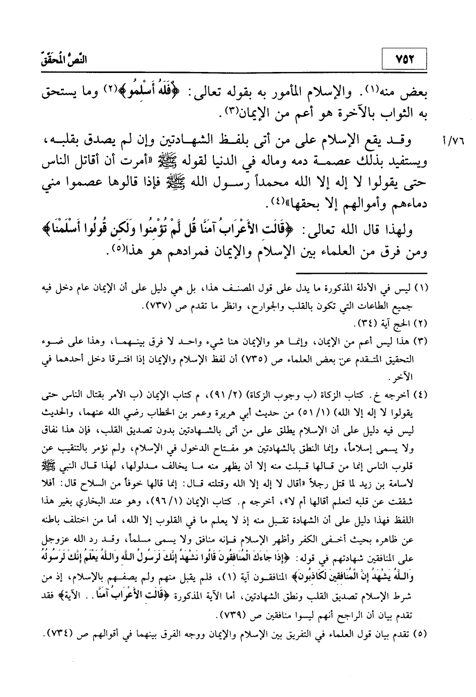 5 تقدم بيان أن قول العلماء في التفريق بين الإسلام والإيمان ووجه الفرق بينهما في أقوالهم ص 734.