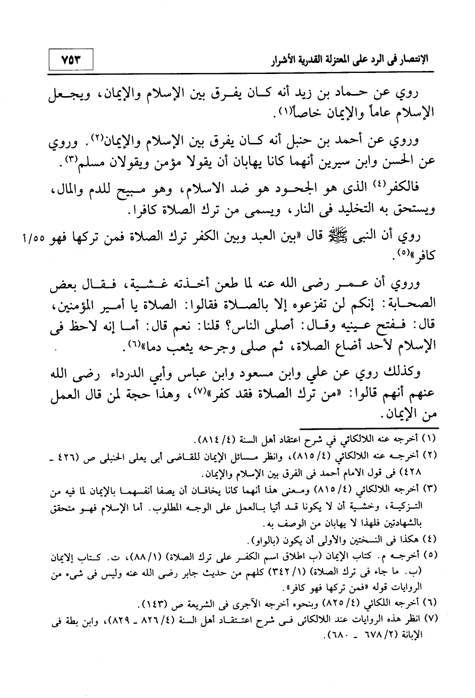 7 انظر: هذه الروايات عند اللالكائي في شرح اعتقاد أهل السنة 4/826 - 829، وابن بطة في الإبانة 2/678 - 680.