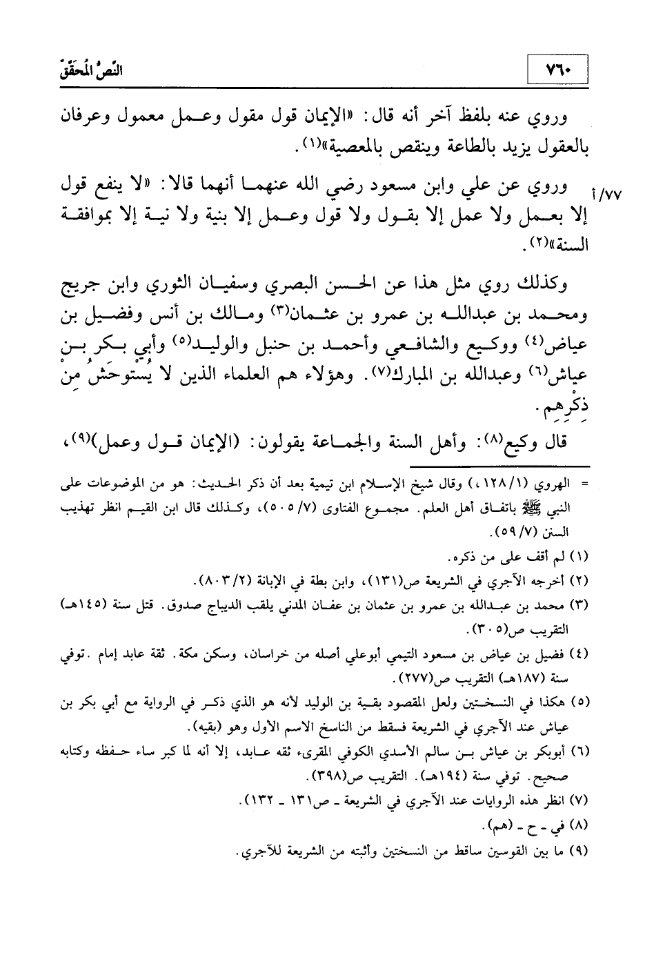 7 انظر: هذه الروايات عند الآجري في الشريعة - ص 131 - 132.