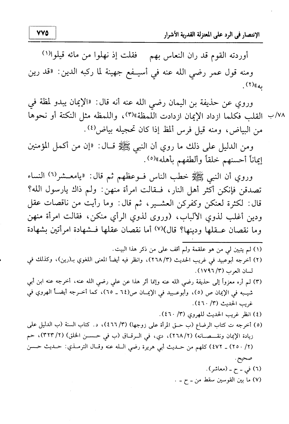3لم أره معزواً إلى حذيفة - رضي الله عنه - وإنما أثر هذا عن علي - رضي الله عنه -، أخرجه عنه ابن أبي شيبة في الإيمان ص 5، وأبو عبيد في الإيمان ص 64 - 65، كما أخرجه أيضاً الهروي في غريب الحديث 3/460.