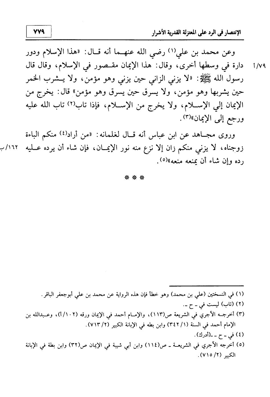 5 أخرجه الآجري في الشريعة - ص 114 وابن أبي شيبة في الإيمان ص 32 وابن بطة في الإبانة الكبير 2/715.