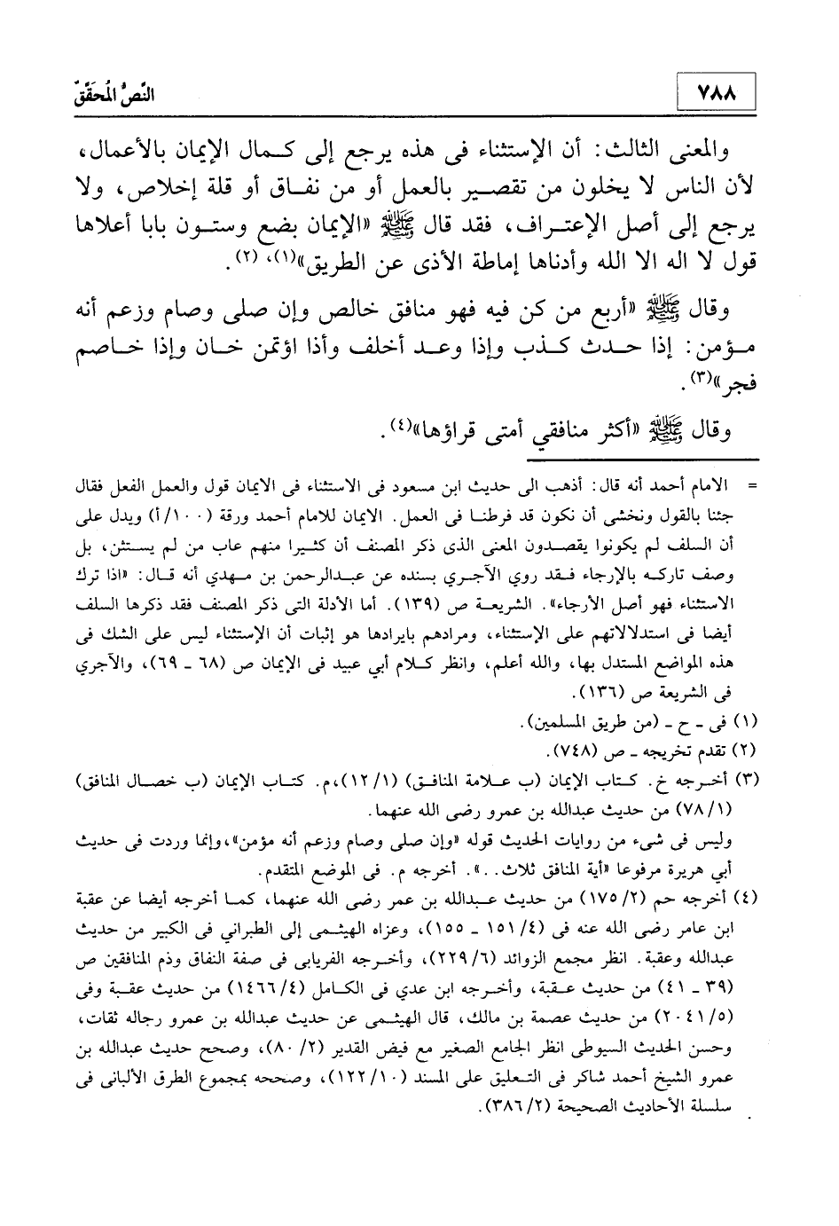 3 أخرجه خ. كتاب الإيمان (ب علامة المنافق) 1/12، م. كتاب الإيمان (ب خصال المنافق) 1/78 من حديث عبد الله بن عمرو - رضي الله عنهما -.