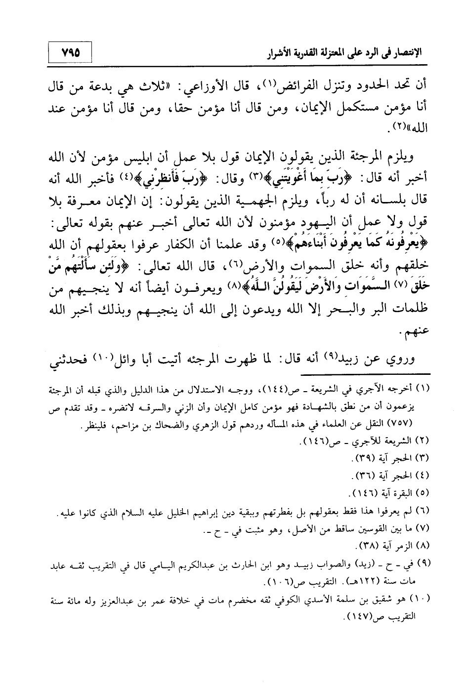 وروي عن زبيد9 أنه قال: لما ظهرت المرجئة أتيت أبا وائل10 فحدثني